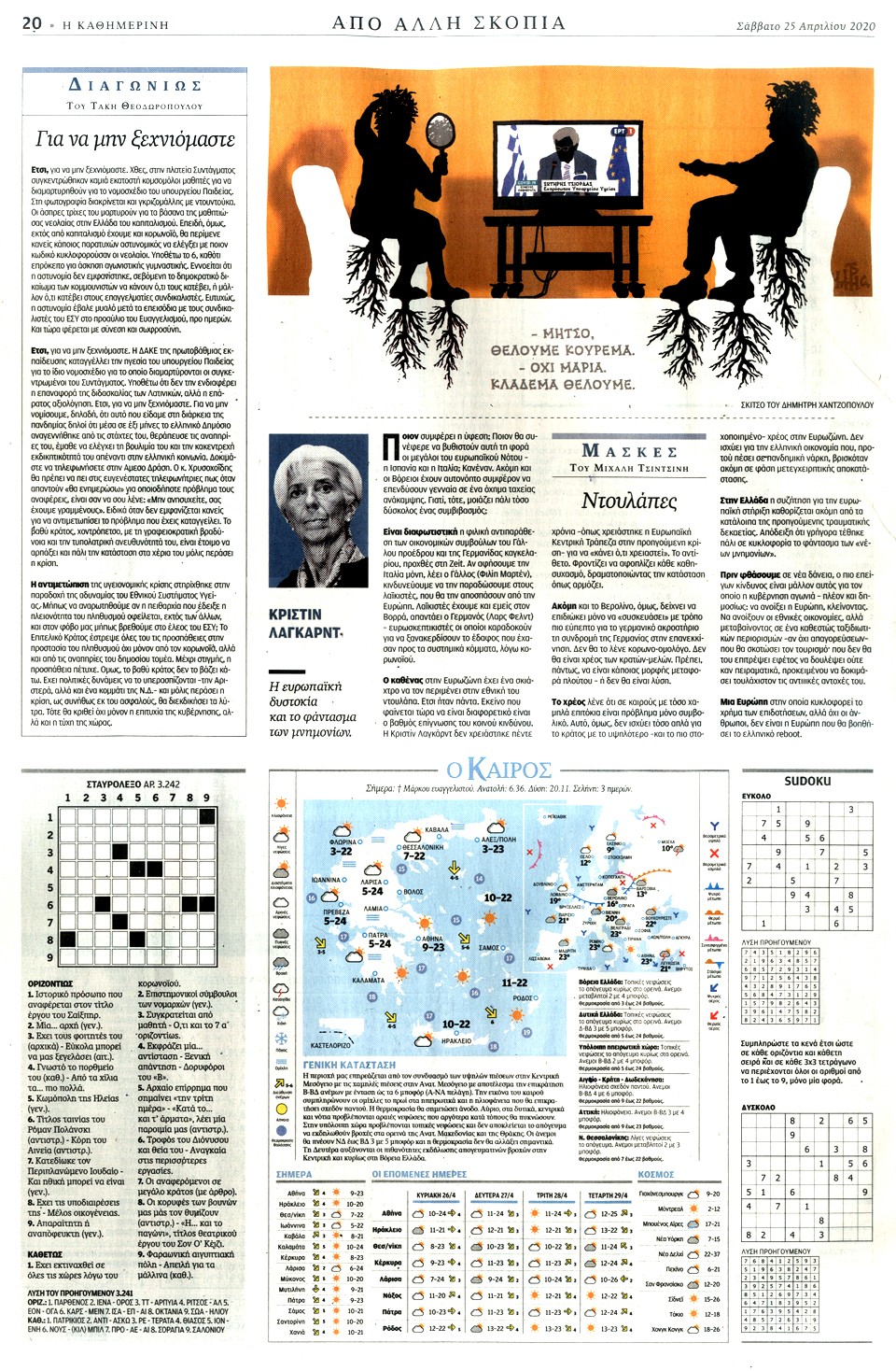 ΚΑΘΗΜΕΡΙΝΗ - 25 Απριλίου 2020