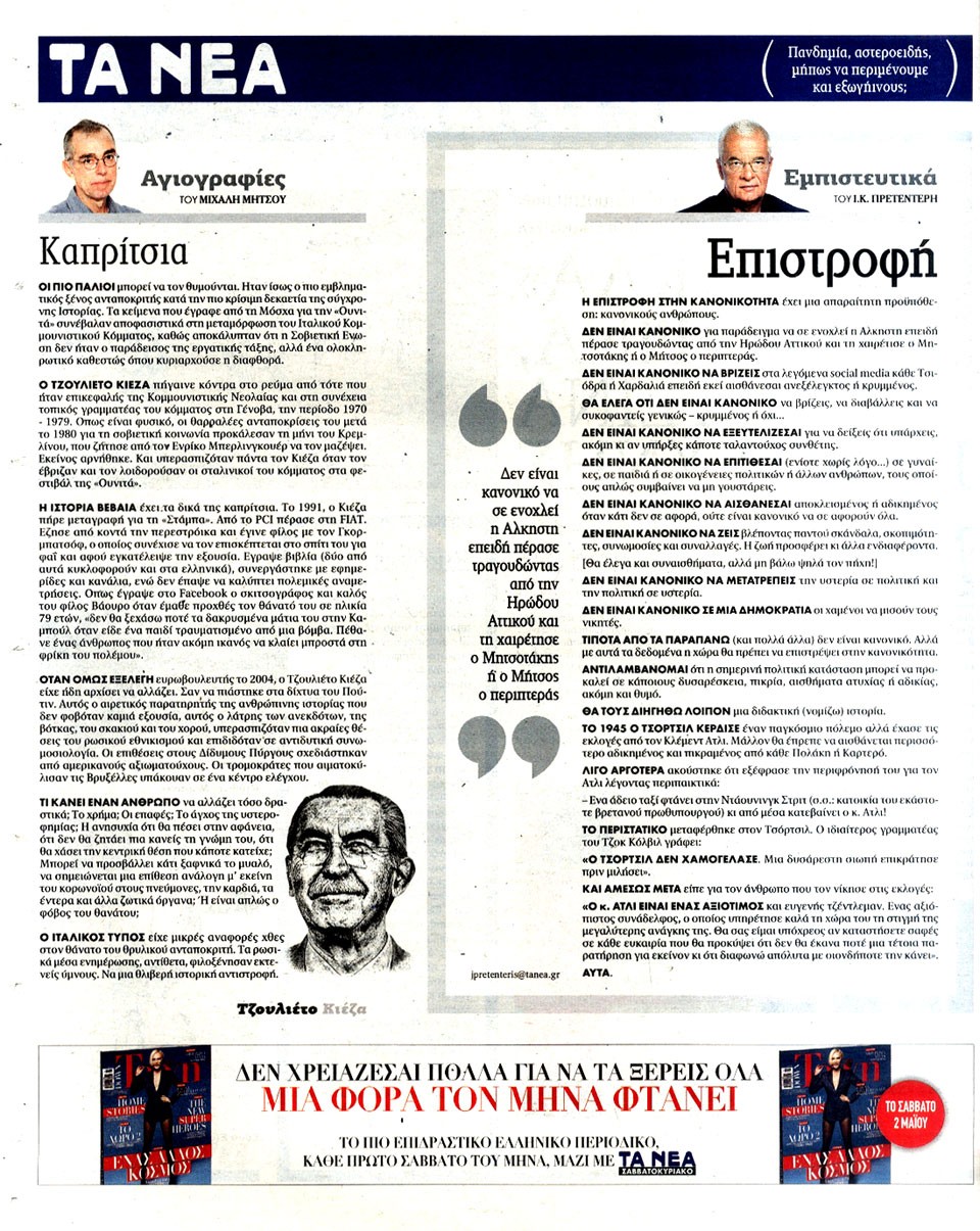 ΤΑ ΝΕΑ - 28 Απριλίου 2020