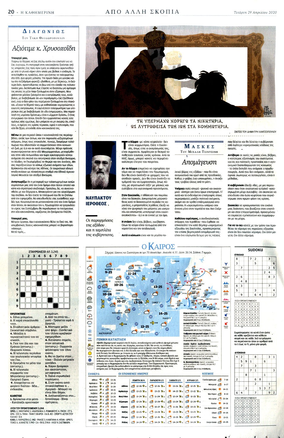 ΚΑΘΗΜΕΡΙΝΗ - 29 Απριλίου 2020