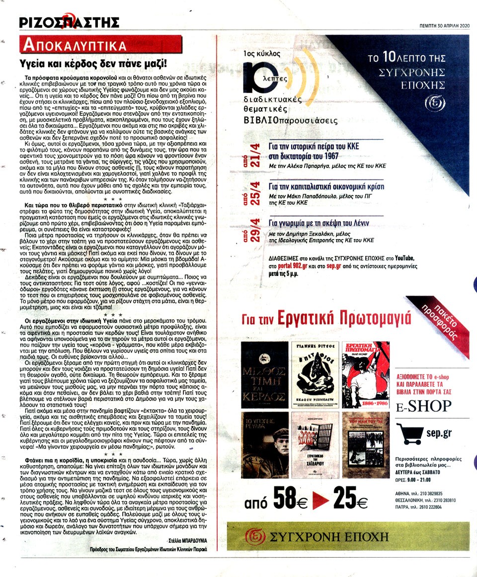 ΡΙΖΟΣΠΑΣΤΗΣ - 30 Απριλίου 2020