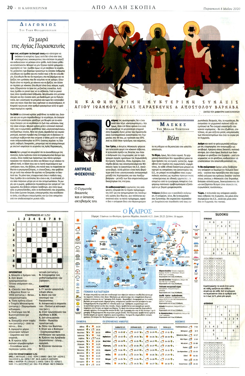ΚΑΘΗΜΕΡΙΝΗ - 8 Μαΐου 2020