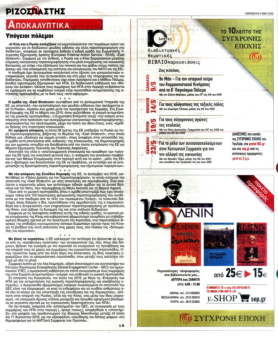 ΡΙΖΟΣΠΑΣΤΗΣ - 8 Μαΐου 2020