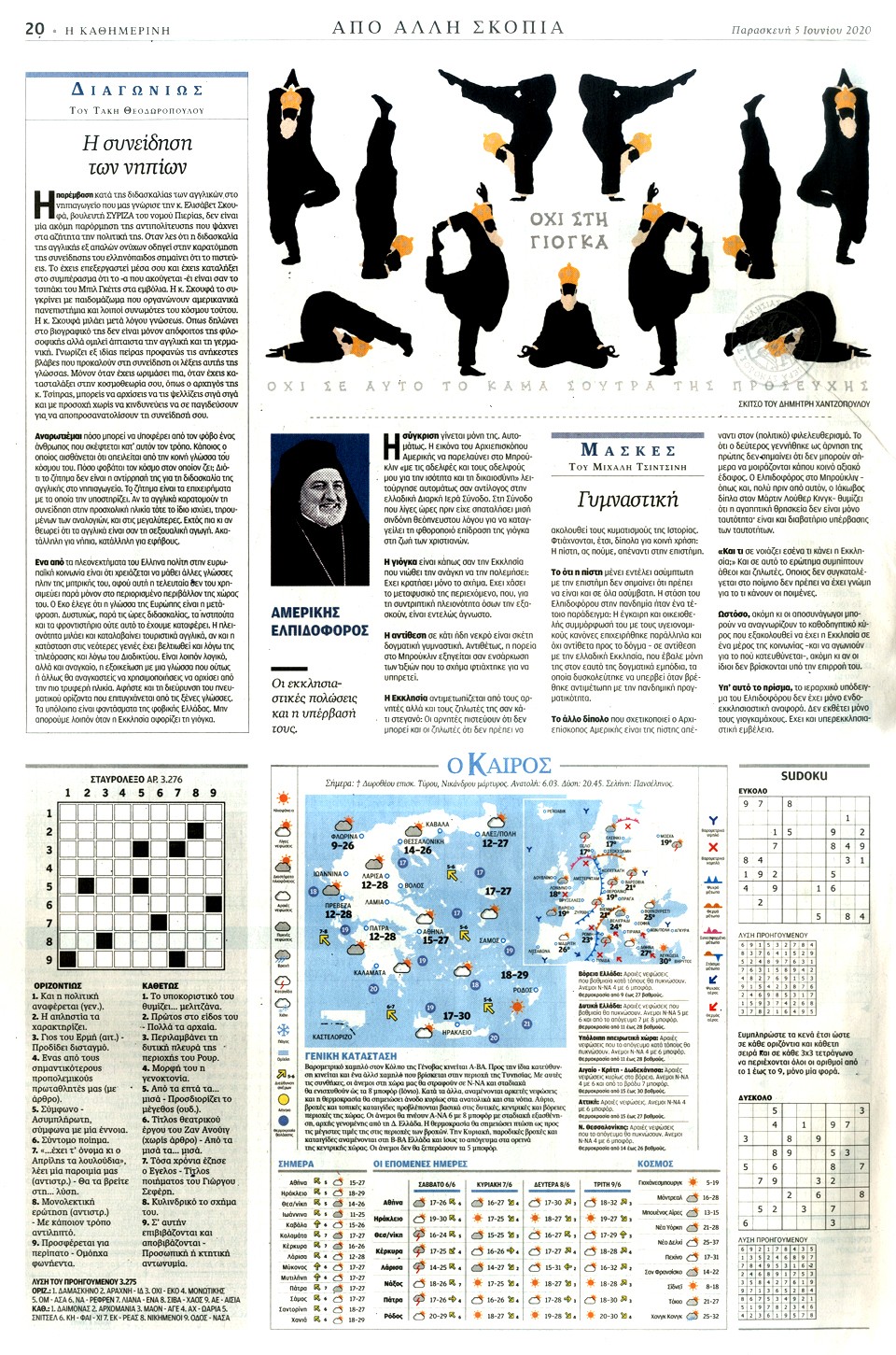 ΚΑΘΗΜΕΡΙΝΗ - 5 Ιουνίου 2020