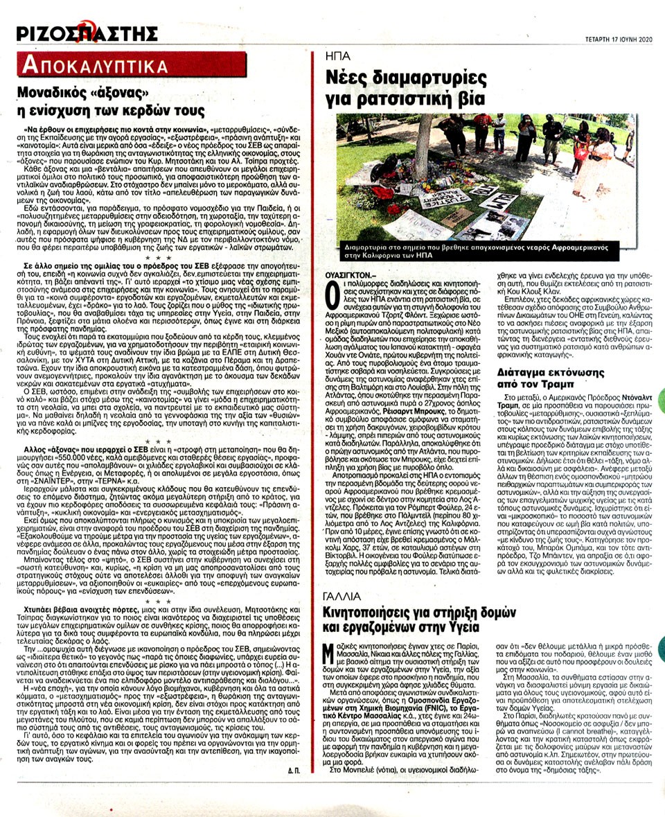 ΡΙΖΟΣΠΑΣΤΗΣ - 17 Ιουνίου 2020