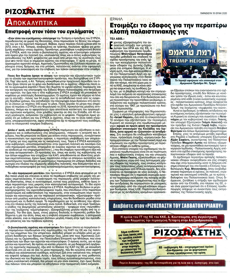 ΡΙΖΟΣΠΑΣΤΗΣ - 19 Ιουνίου 2020