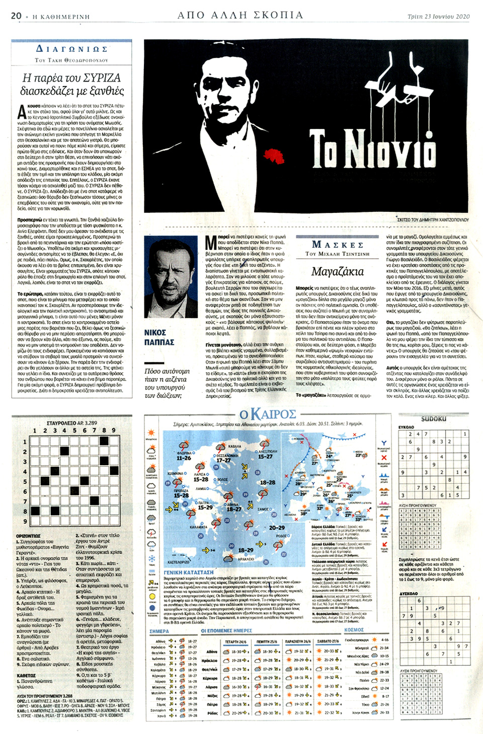 ΚΑΘΗΜΕΡΙΝΗ - 23 Ιουνίου 2020