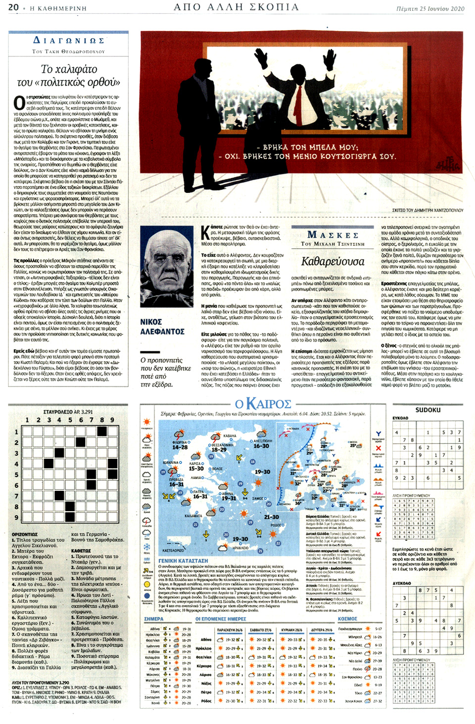 ΚΑΘΗΜΕΡΙΝΗ - 25 Ιουνίου 2020