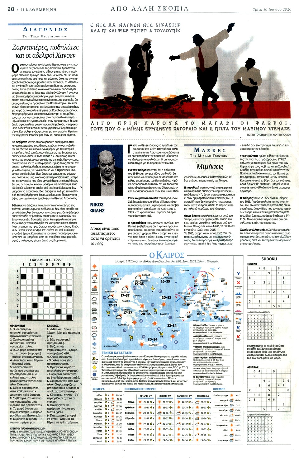 ΚΑΘΗΜΕΡΙΝΗ - 30 Ιουνίου 2020