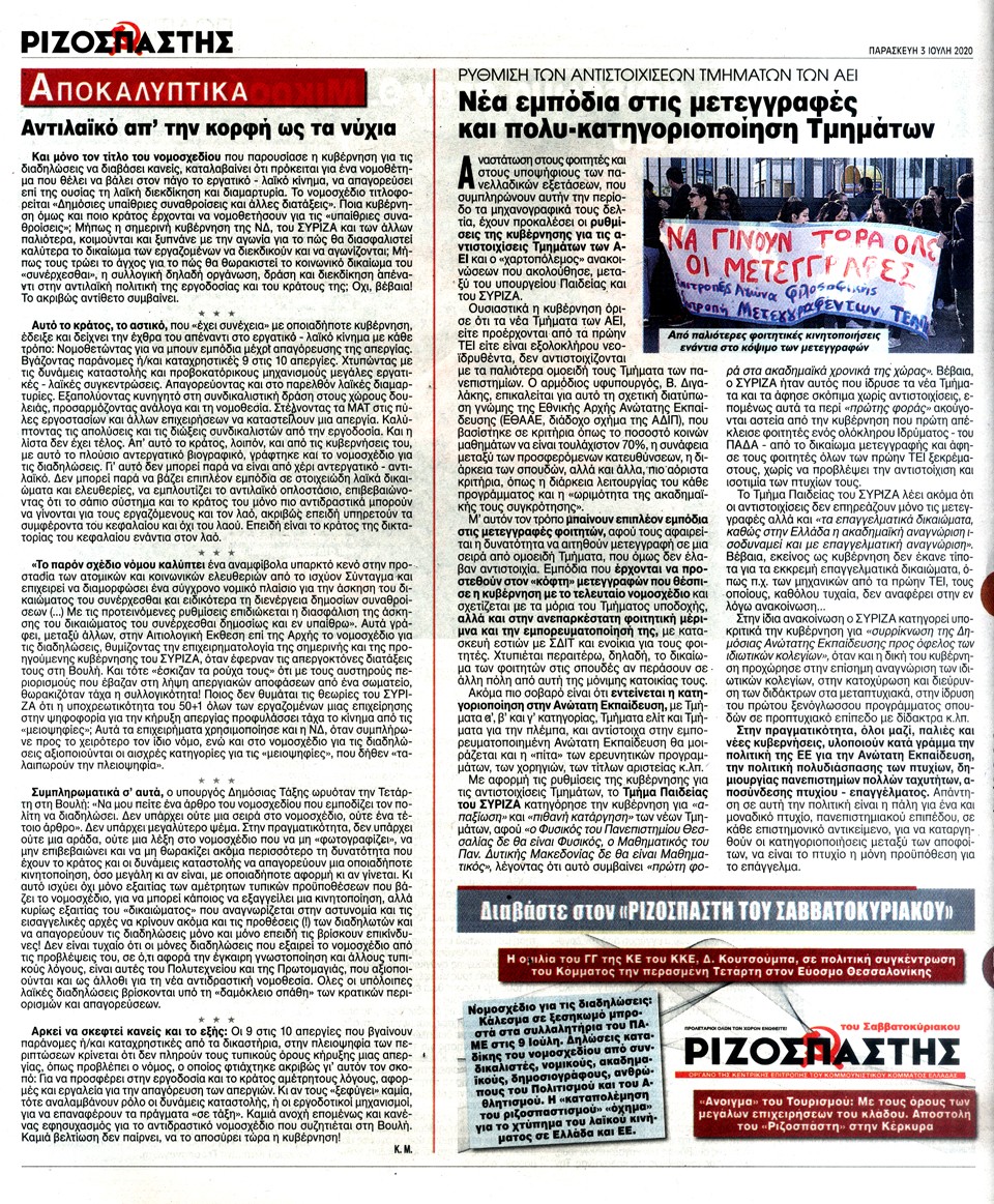 ΡΙΖΟΣΠΑΣΤΗΣ - 3 Ιουλίου 2020
