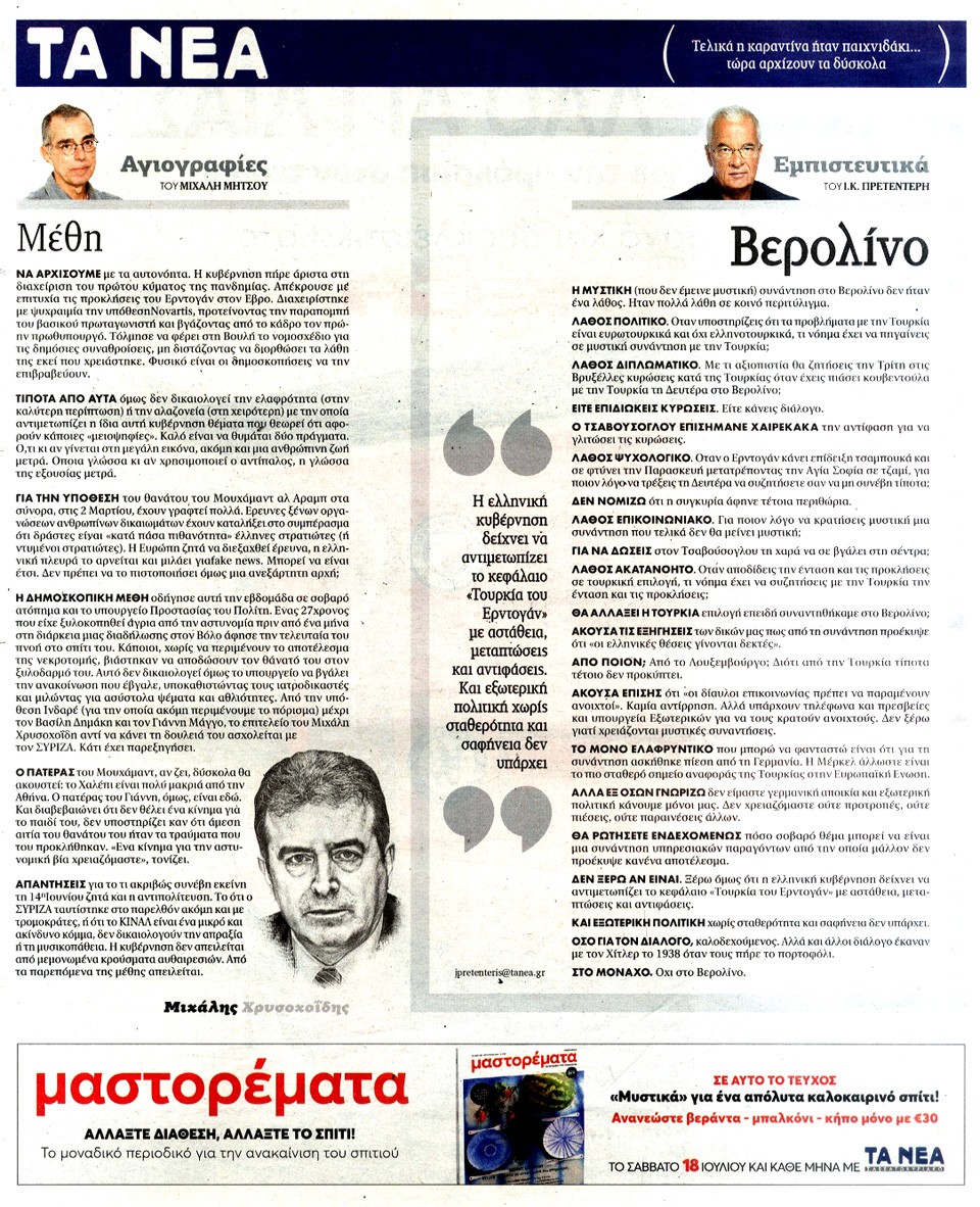 ΤΑ ΝΕΑ - 16 Ιουλίου 2020