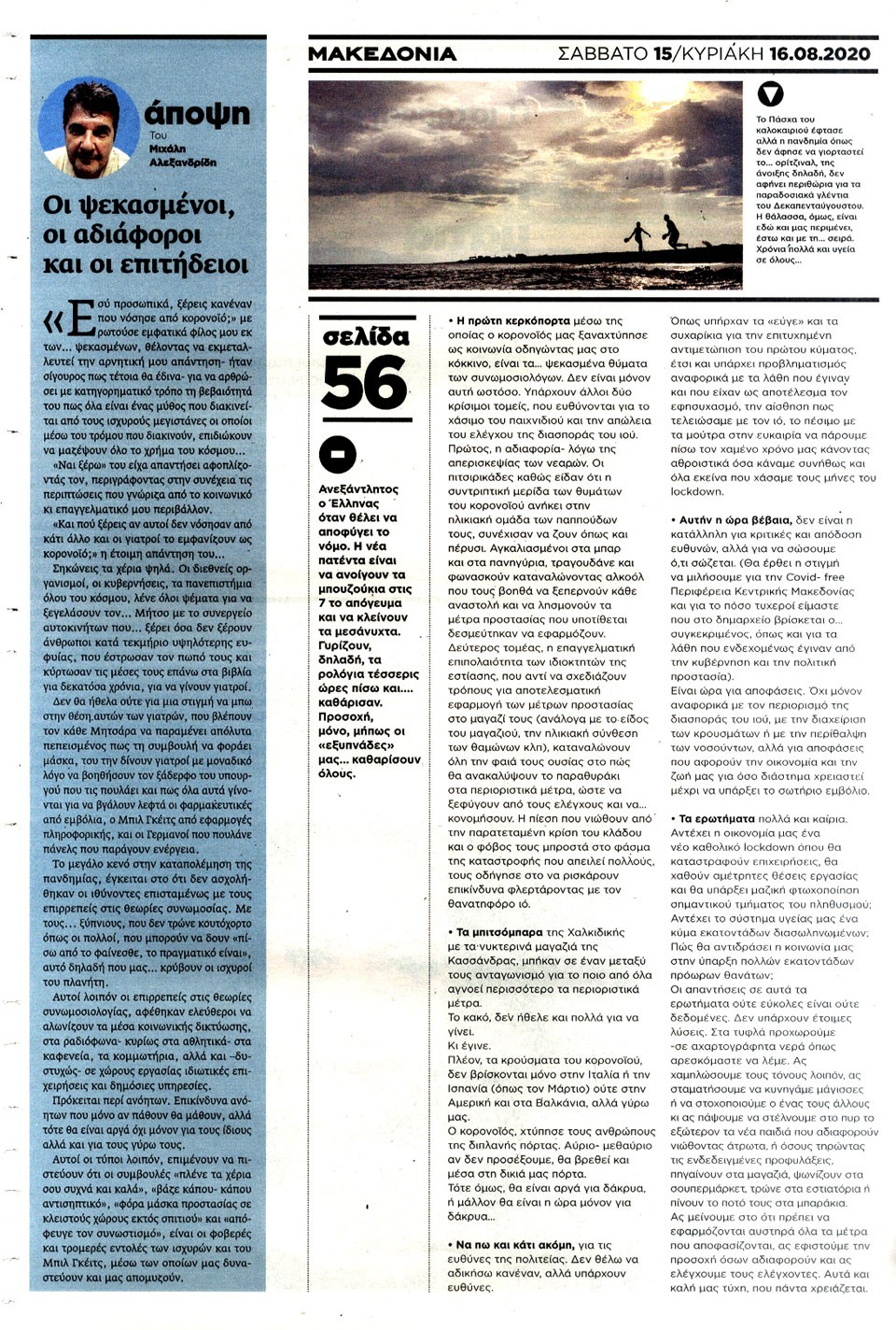 ΜΑΚΕΔΟΝΙΑ ΤΗΣ ΚΥΡΙΑΚΗΣ - 15 Αυγούστου 2020