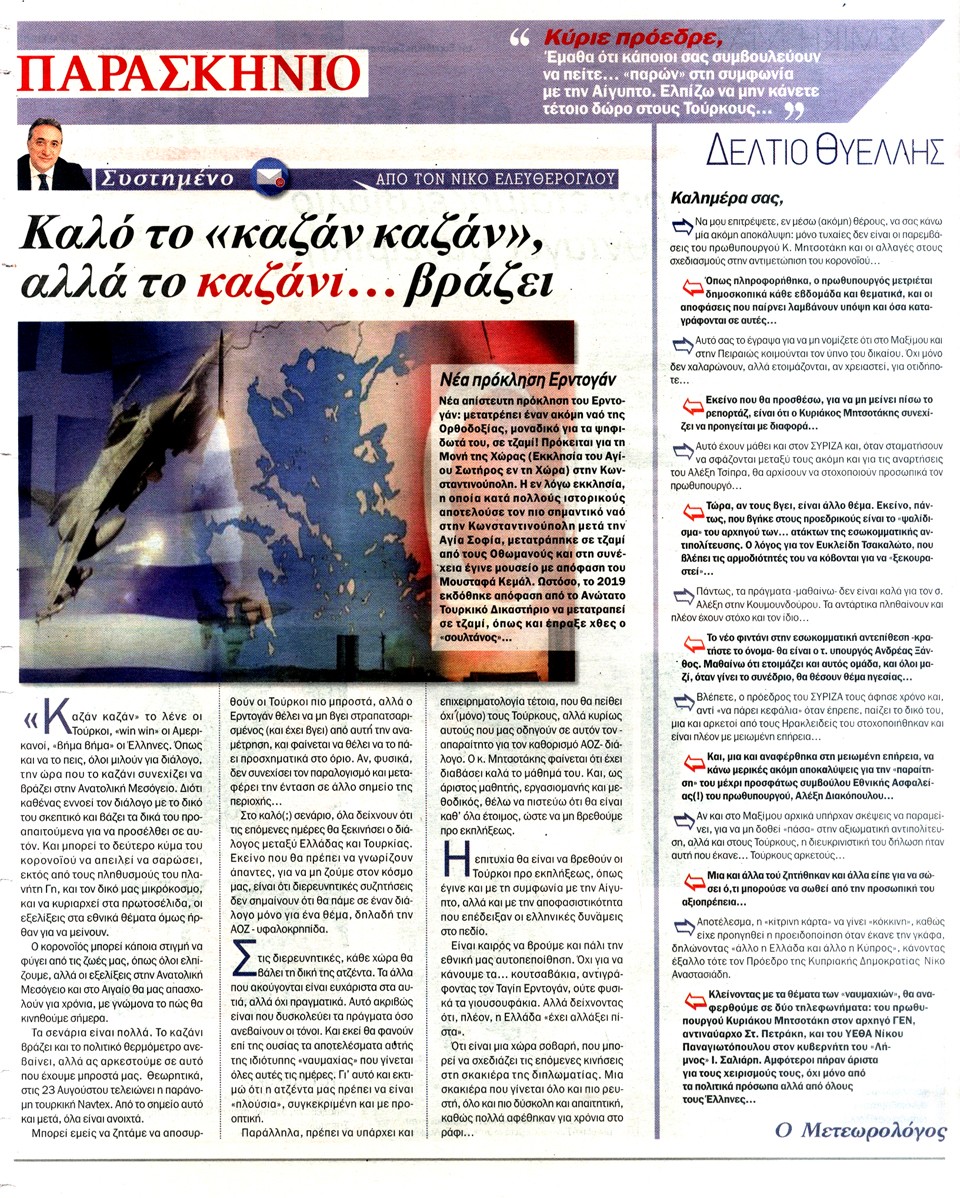 ΤΟ ΠΑΡΑΣΚΗΝΙΟ - 22 Αυγούστου 2020
