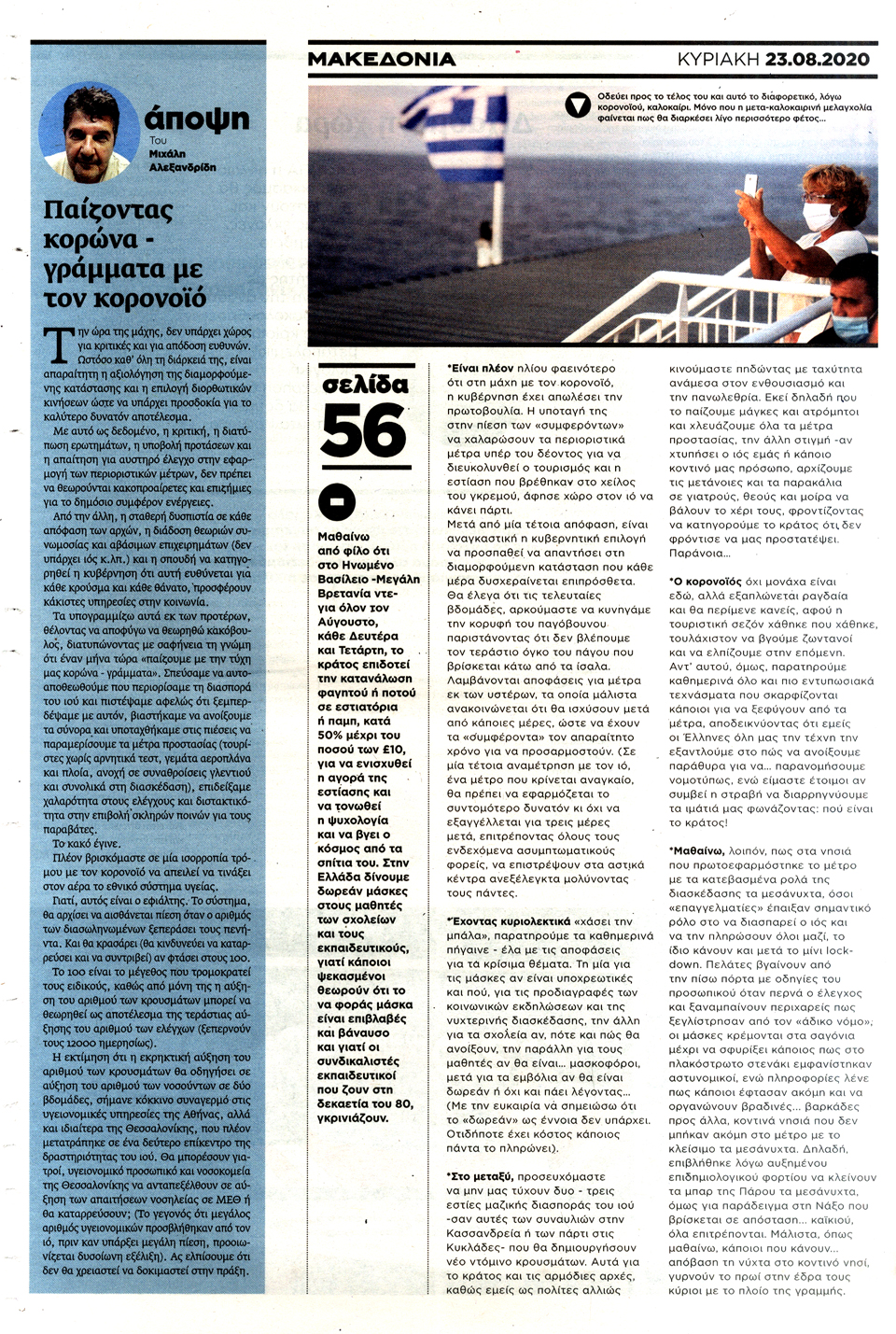 ΜΑΚΕΔΟΝΙΑ ΤΗΣ ΚΥΡΙΑΚΗΣ - 23 Αυγούστου 2020