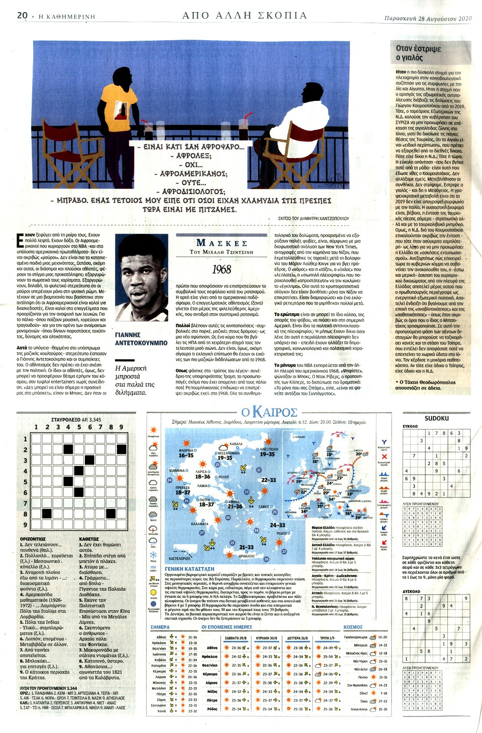 ΚΑΘΗΜΕΡΙΝΗ - 28 Αυγούστου 2020