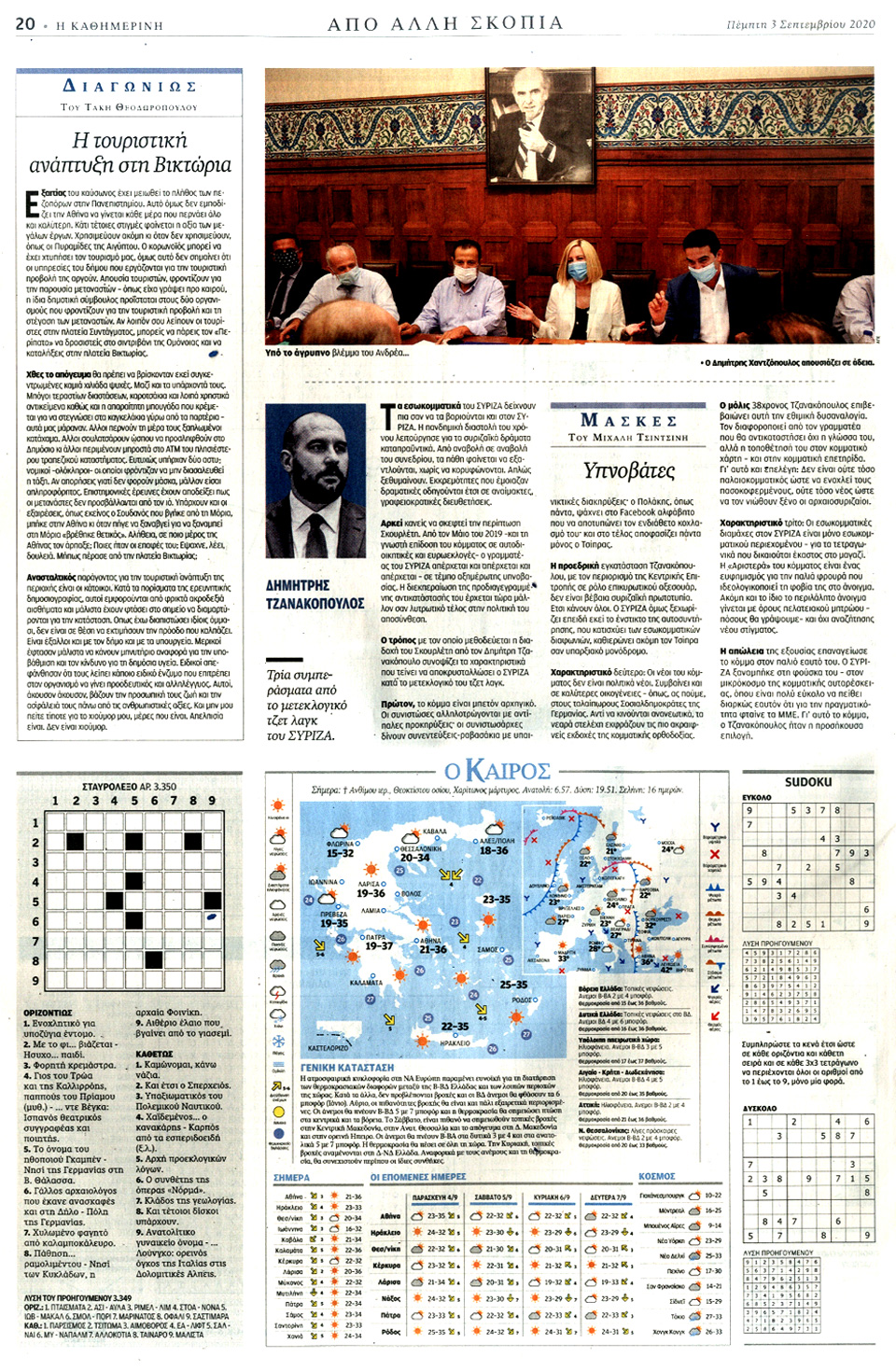 ΚΑΘΗΜΕΡΙΝΗ - 3 Σεπτεμβρίου 2020