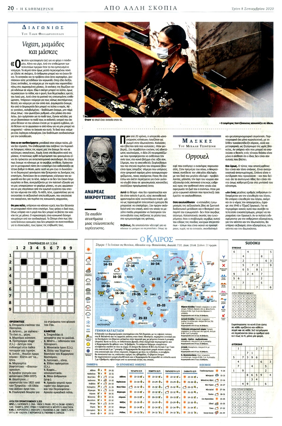 ΚΑΘΗΜΕΡΙΝΗ - 8 Σεπτεμβρίου 2020