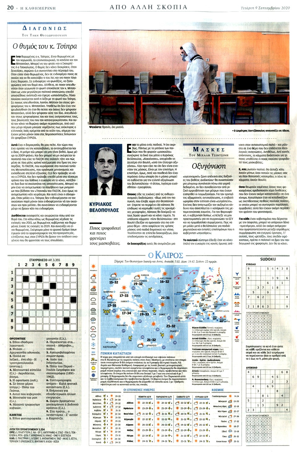 ΚΑΘΗΜΕΡΙΝΗ - 9 Σεπτεμβρίου 2020