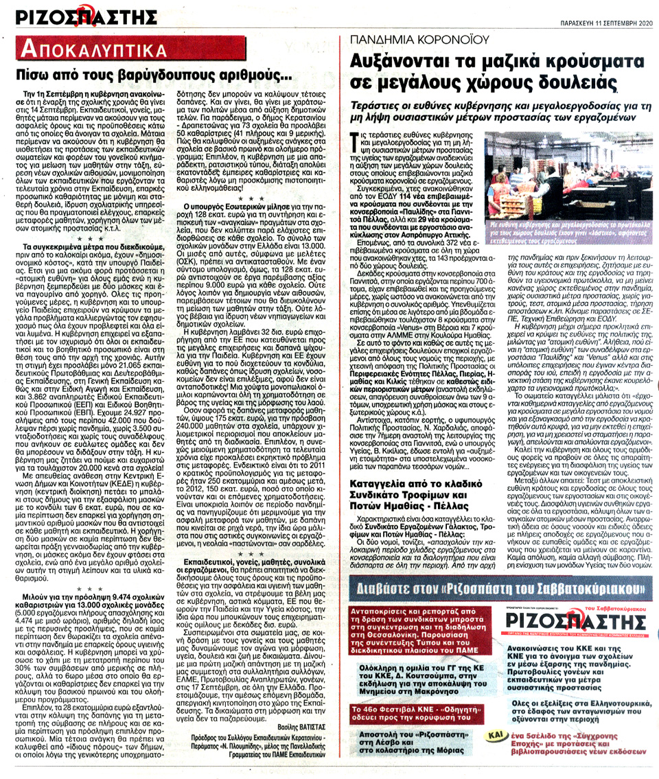 ΡΙΖΟΣΠΑΣΤΗΣ - 11 Σεπτεμβρίου 2020