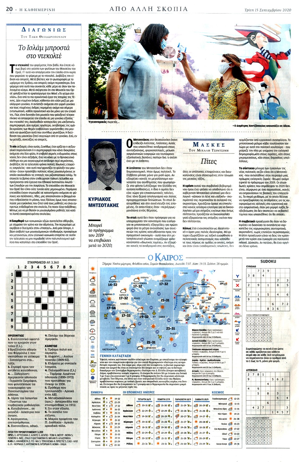ΚΑΘΗΜΕΡΙΝΗ - 15 Σεπτεμβρίου 2020