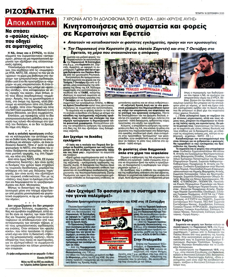 ΡΙΖΟΣΠΑΣΤΗΣ - 16 Σεπτεμβρίου 2020