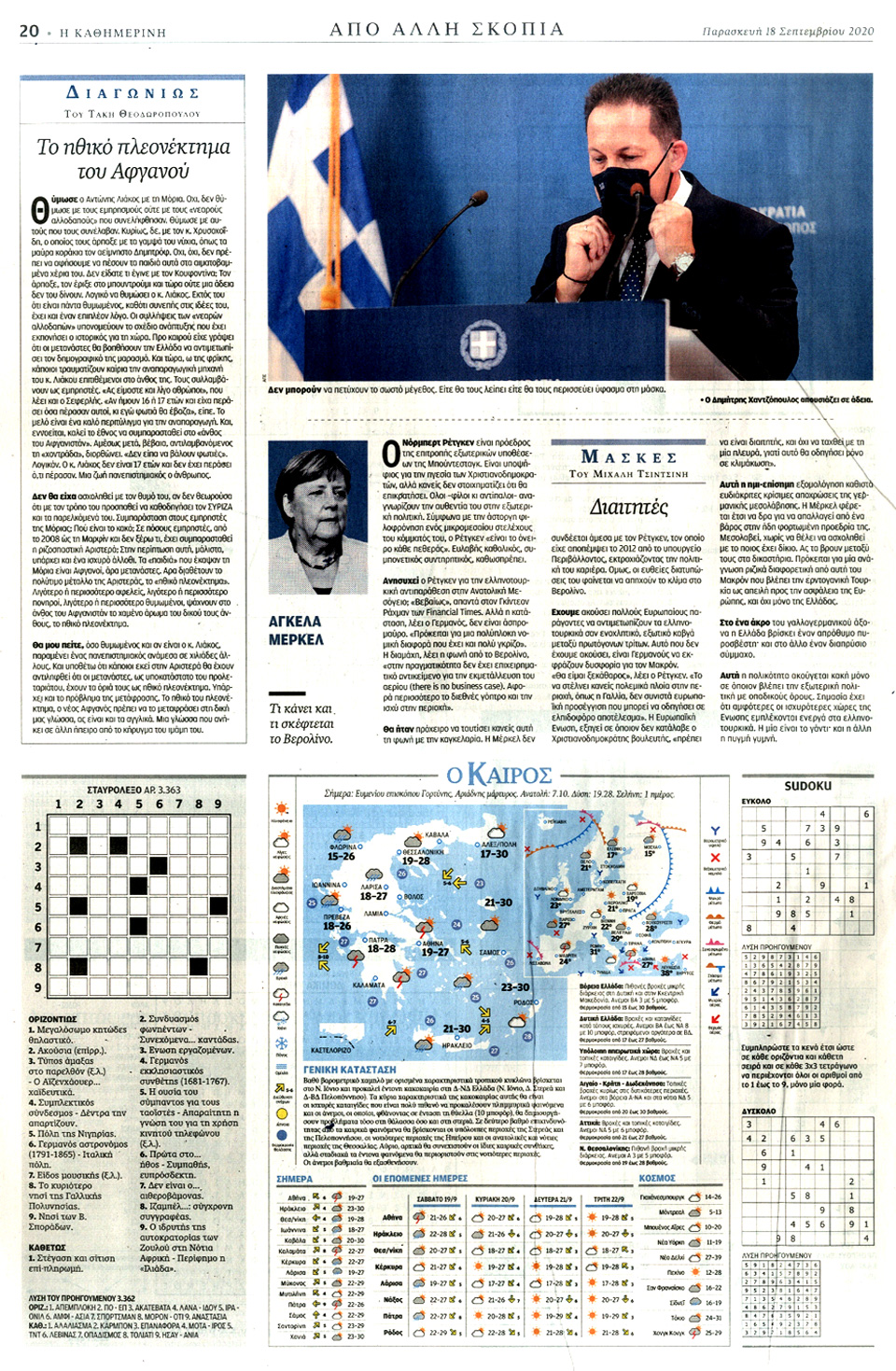 ΚΑΘΗΜΕΡΙΝΗ - 18 Σεπτεμβρίου 2020