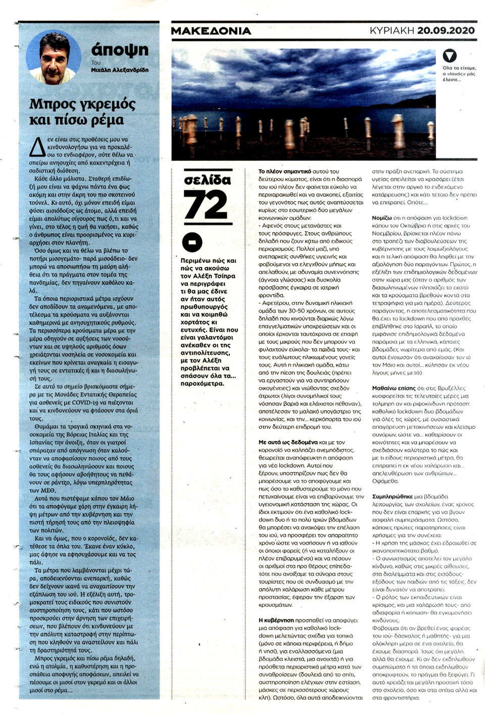 ΜΑΚΕΔΟΝΙΑ ΤΗΣ ΚΥΡΙΑΚΗΣ - 20 Σεπτεμβρίου 2020