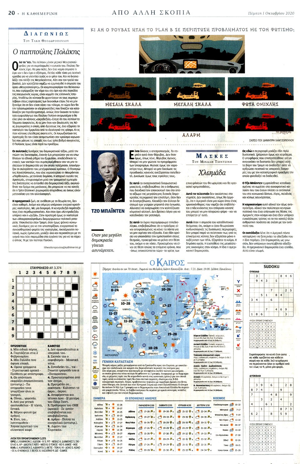 ΚΑΘΗΜΕΡΙΝΗ - 1 Οκτωβρίου 2020