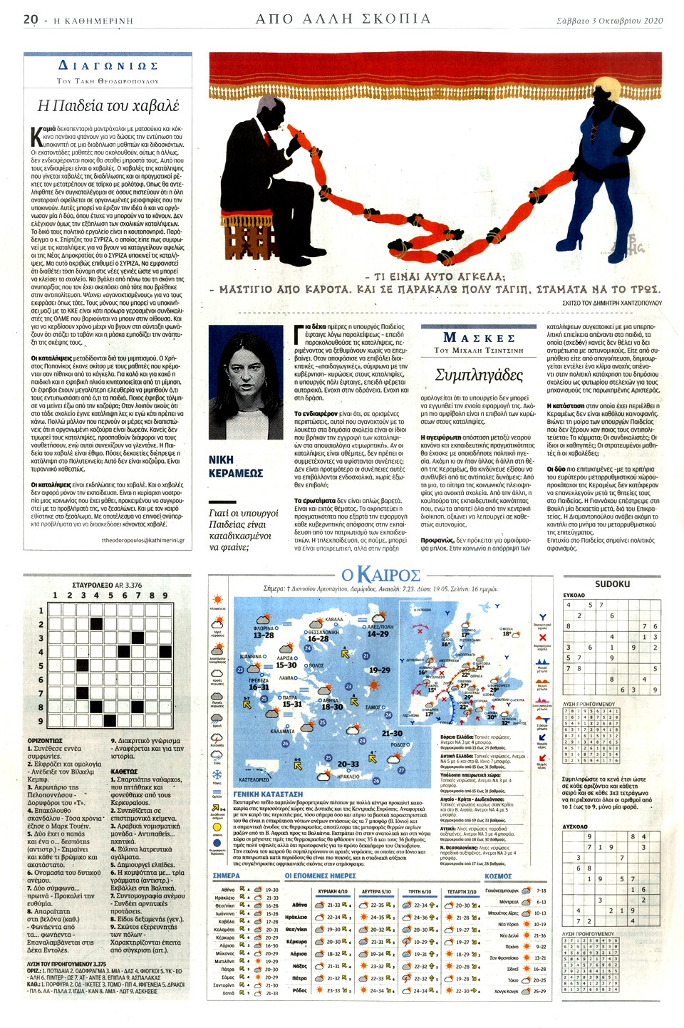 ΚΑΘΗΜΕΡΙΝΗ - 3 Οκτωβρίου 2020