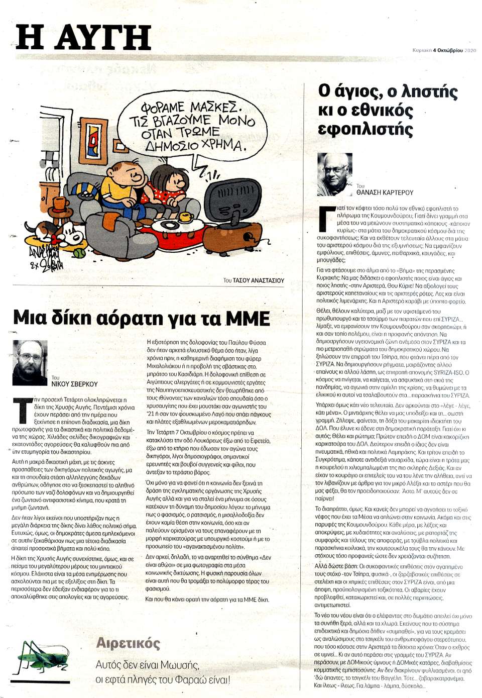 Η ΑΥΓΗ ΤΗΣ ΚΥΡΙΑΚΗΣ - 4 Οκτωβρίου 2020