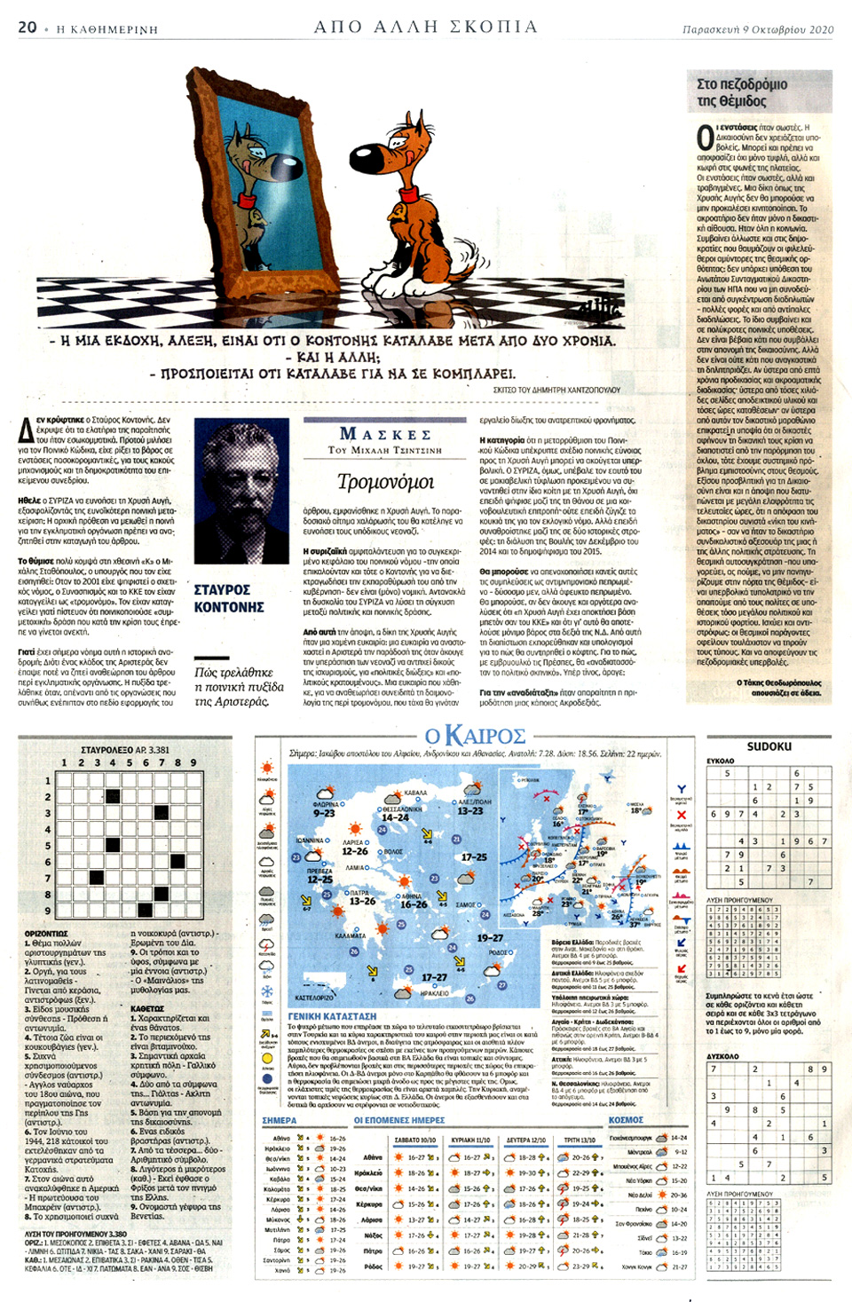 ΚΑΘΗΜΕΡΙΝΗ - 9 Οκτωβρίου 2020
