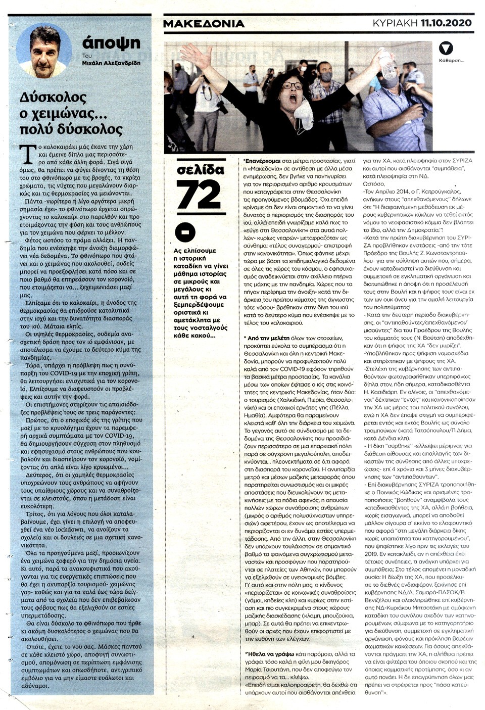 ΚΥΡΙΑΚΑΤΙΚΗ ΔΗΜΟΚΡΑΤΙΑ - 11 Οκτωβρίου 2020