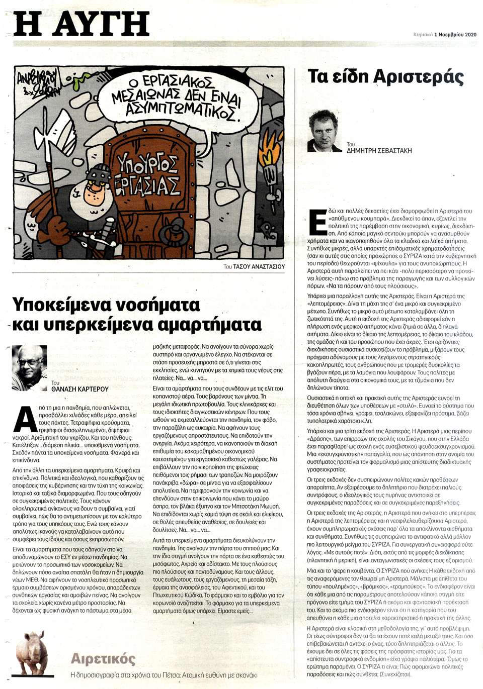 Η ΑΥΓΗ ΤΗΣ ΚΥΡΙΑΚΗΣ - 1 Νοεμβρίου 2020