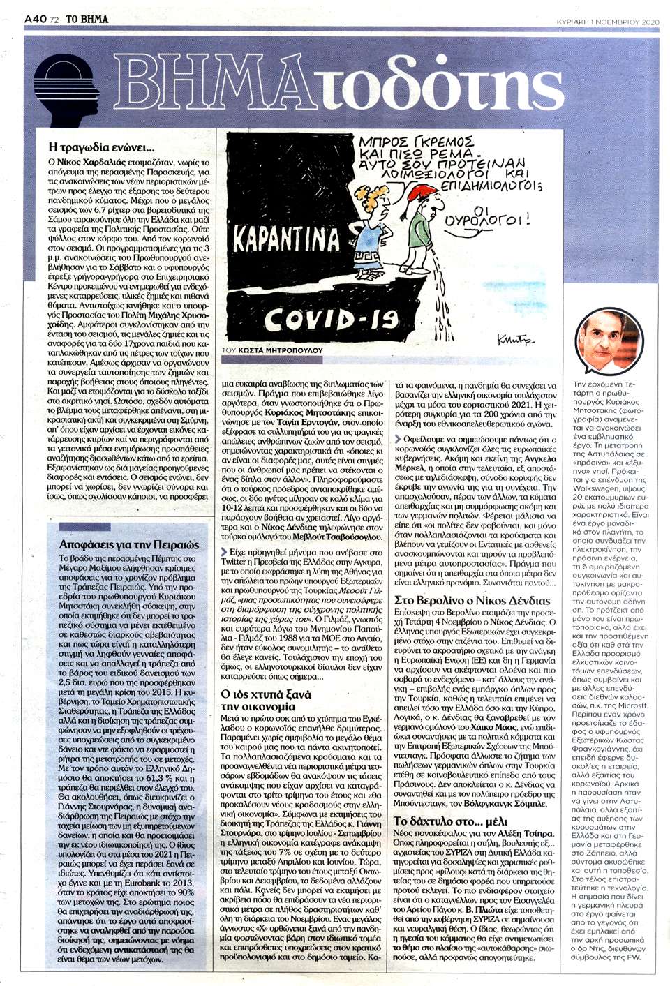 ΤΟ ΒΗΜΑ ΤΗΣ ΚΥΡΙΑΚΗΣ - 1 Νοεμβρίου 2020