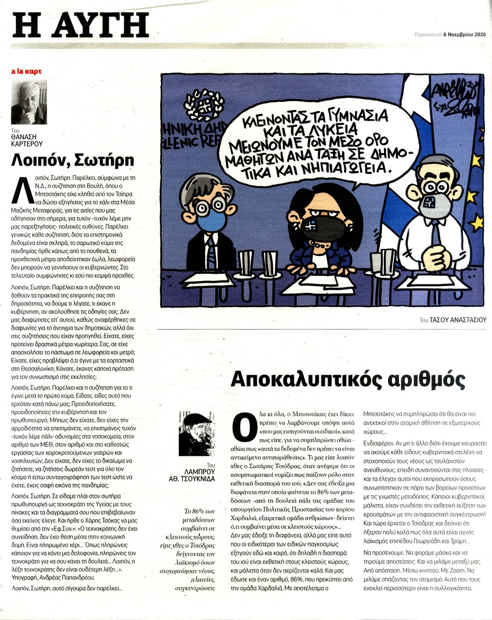 Η ΑΥΓΗ - 6 Νοεμβρίου 2020