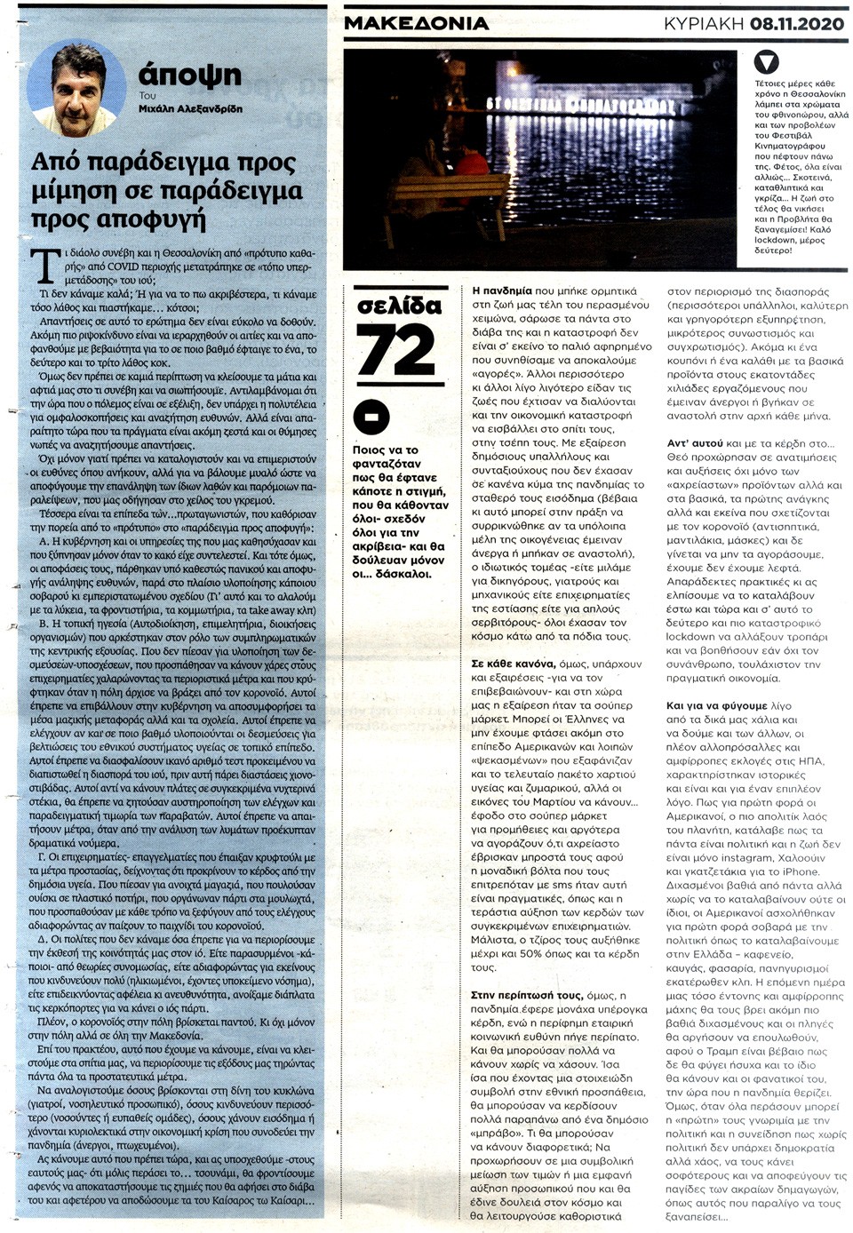 ΜΑΚΕΔΟΝΙΑ ΤΗΣ ΚΥΡΙΑΚΗΣ - 8 Νοεμβρίου 2020