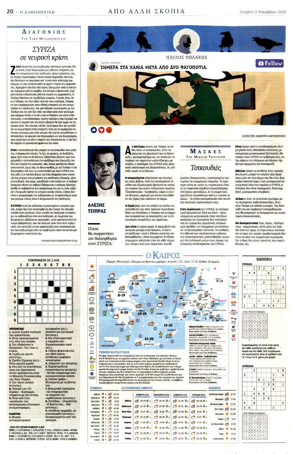 ΚΑΘΗΜΕΡΙΝΗ - 11 Νοεμβρίου 2020