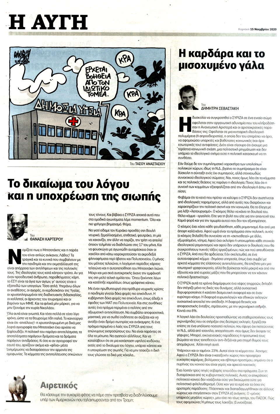 Η ΑΥΓΗ ΤΗΣ ΚΥΡΙΑΚΗΣ - 15 Νοεμβρίου 2020