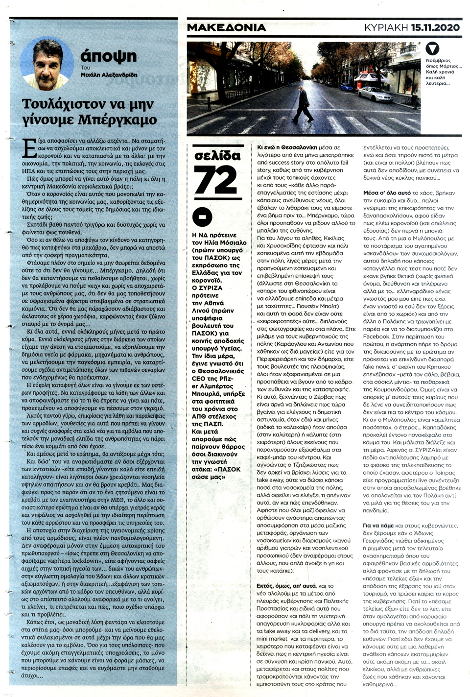 ΜΑΚΕΔΟΝΙΑ ΤΗΣ ΚΥΡΙΑΚΗΣ - 15 Νοεμβρίου 2020