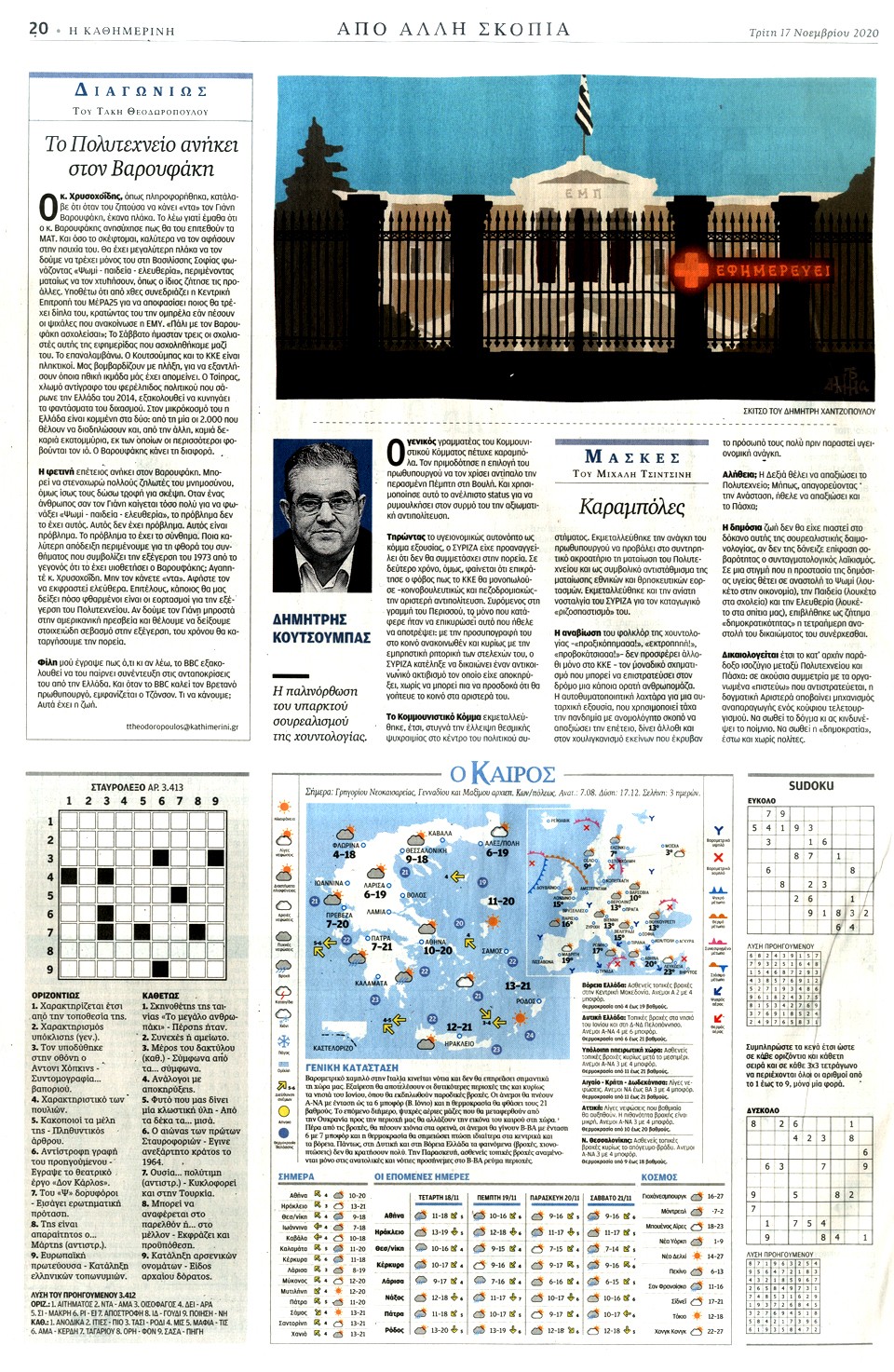 ΚΑΘΗΜΕΡΙΝΗ - 17 Νοεμβρίου 2020