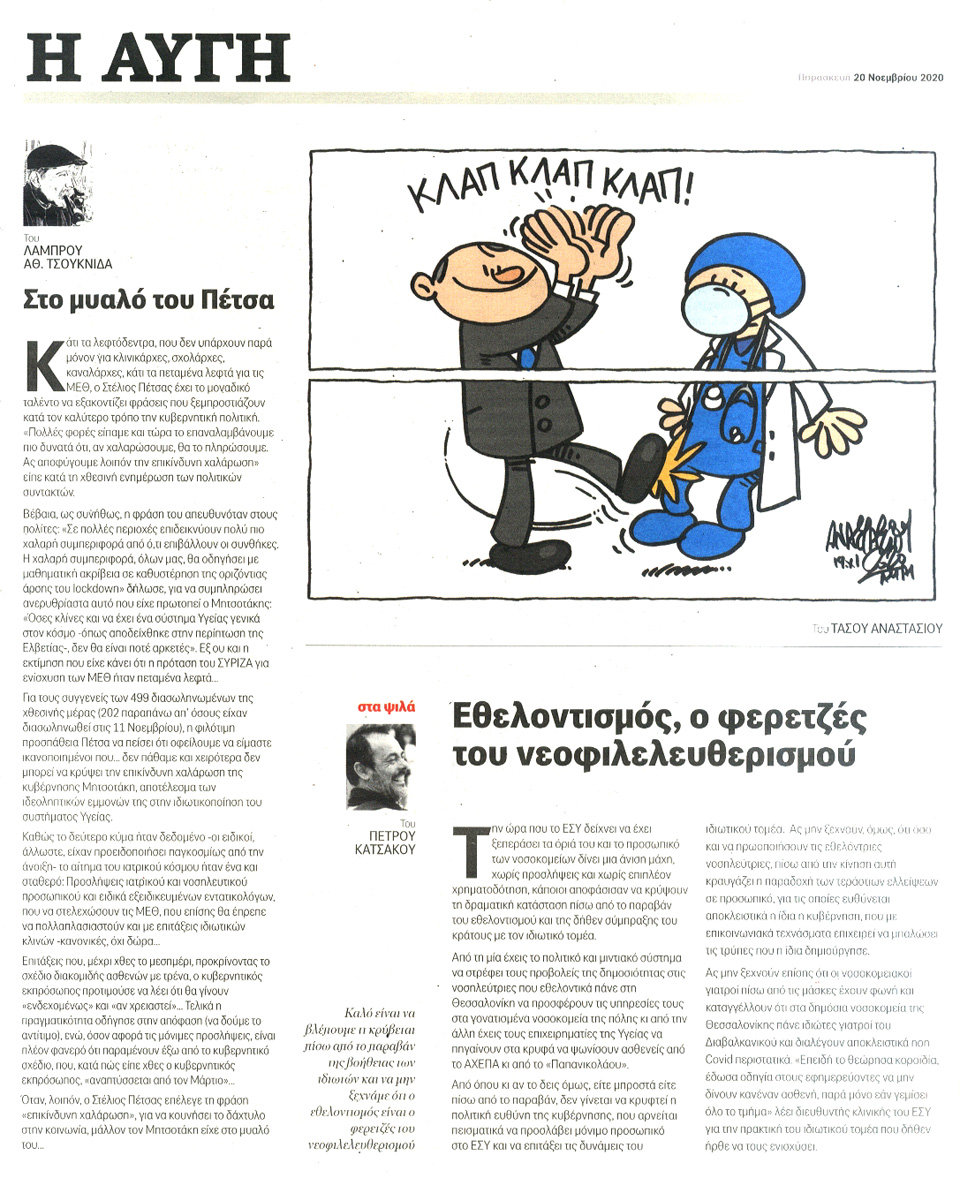 Η ΑΥΓΗ - 20 Νοεμβρίου 2020
