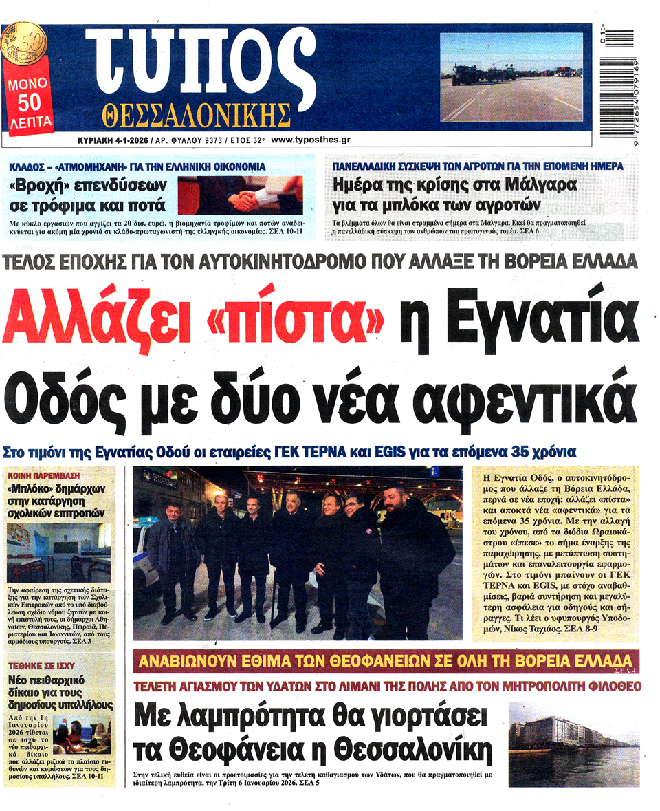 ΤΥΠΟΣ ΘΕΣΣΑΛΟΝΙΚΗΣ - 04 Ιανουαρίου 2026
