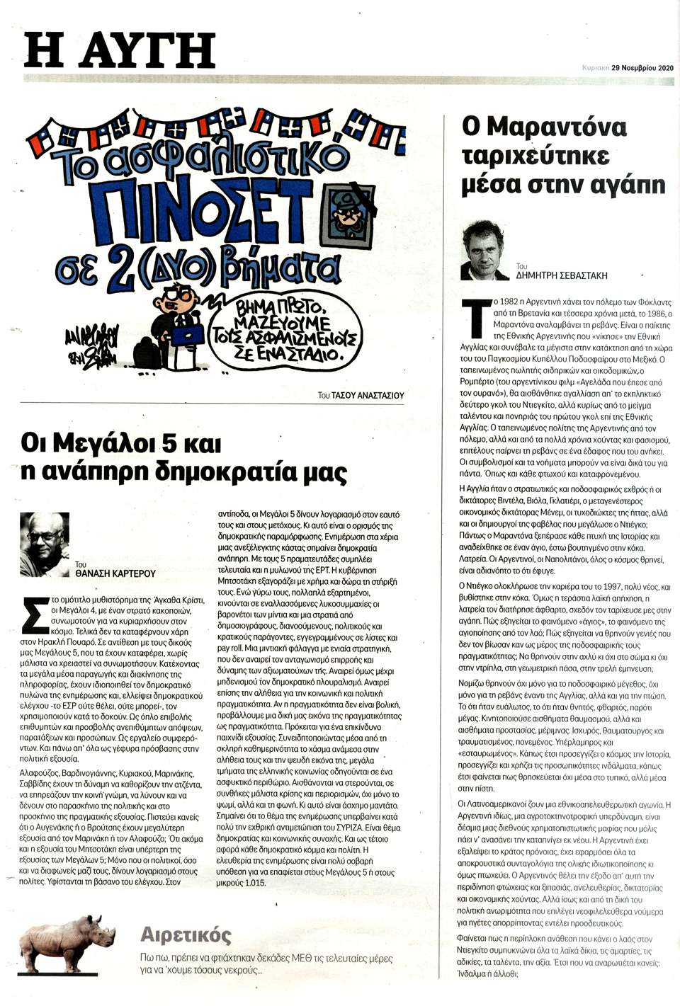 Η ΑΥΓΗ ΤΗΣ ΚΥΡΙΑΚΗΣ - 29 Νοεμβρίου 2020
