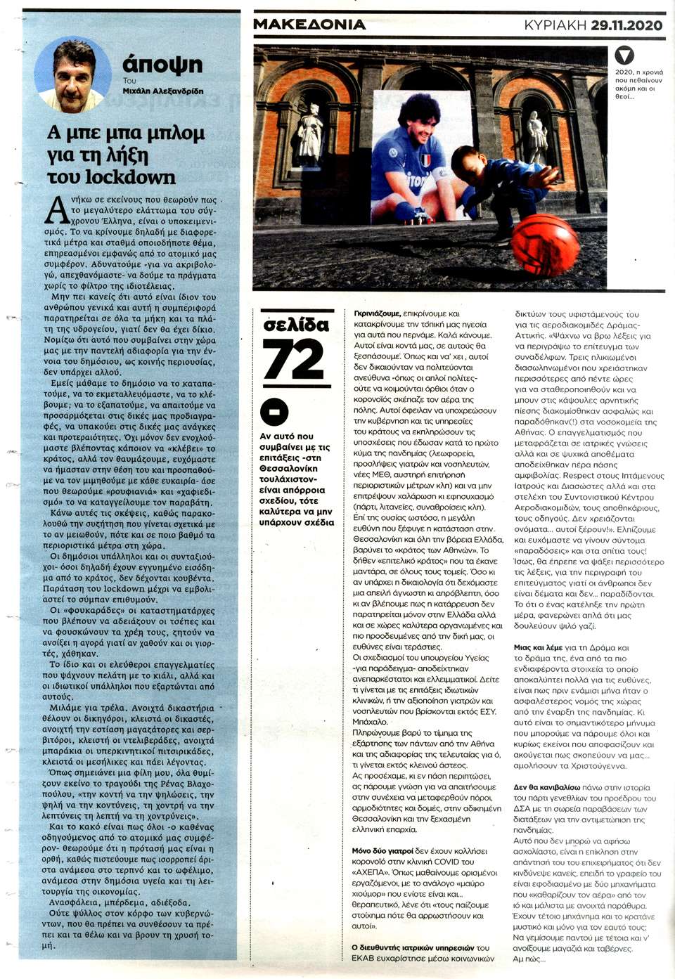 ΜΑΚΕΔΟΝΙΑ ΤΗΣ ΚΥΡΙΑΚΗΣ - 29 Νοεμβρίου 2020