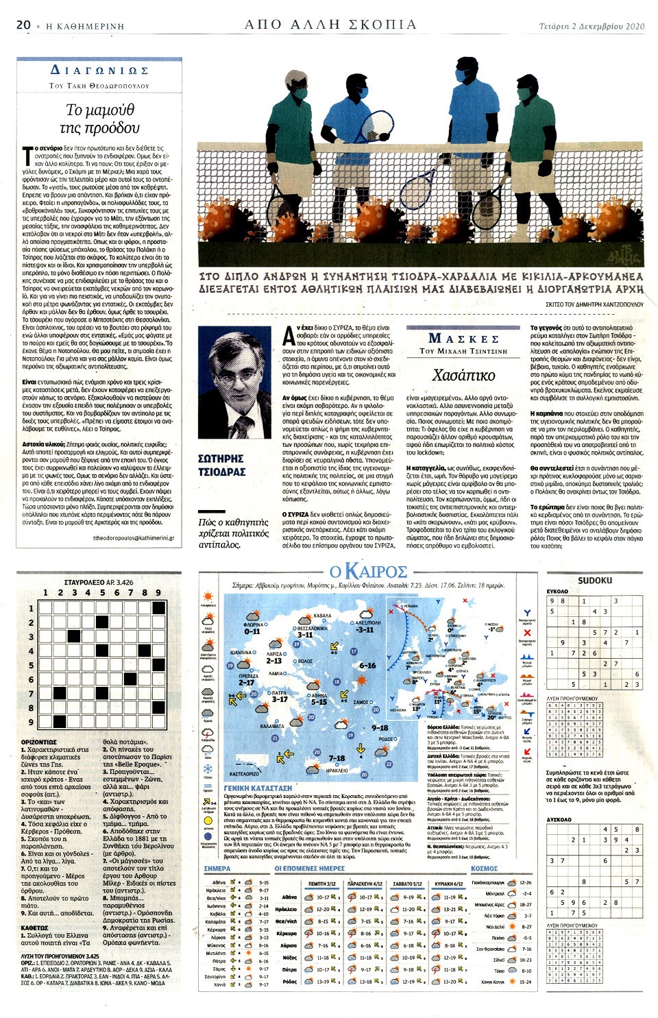ΚΑΘΗΜΕΡΙΝΗ - 2 Δεκεμβρίου 2020