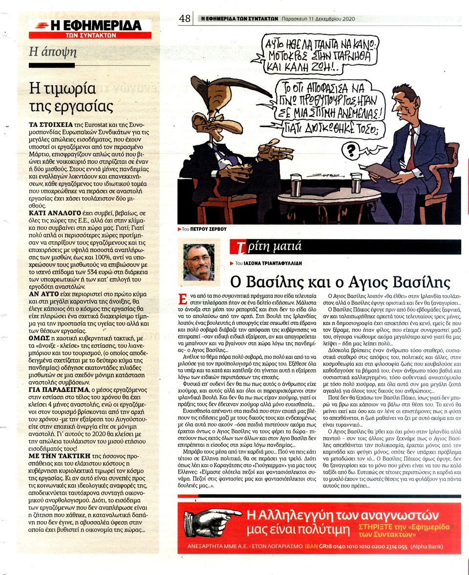 Η ΕΦΗΜΕΡΙΔΑ ΤΩΝ ΣΥΝΤΑΚΤΩΝ - 11 Δεκεμβρίου 2020