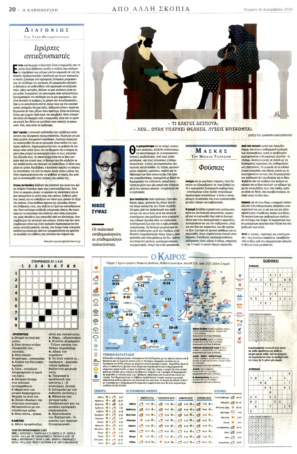 ΚΑΘΗΜΕΡΙΝΗ - 16 Δεκεμβρίου 2020