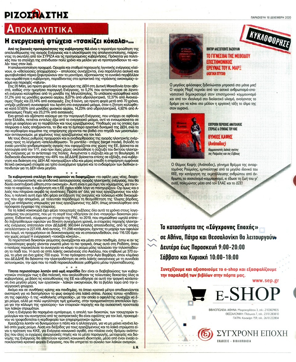 ΡΙΖΟΣΠΑΣΤΗΣ - 18 Δεκεμβρίου 2020
