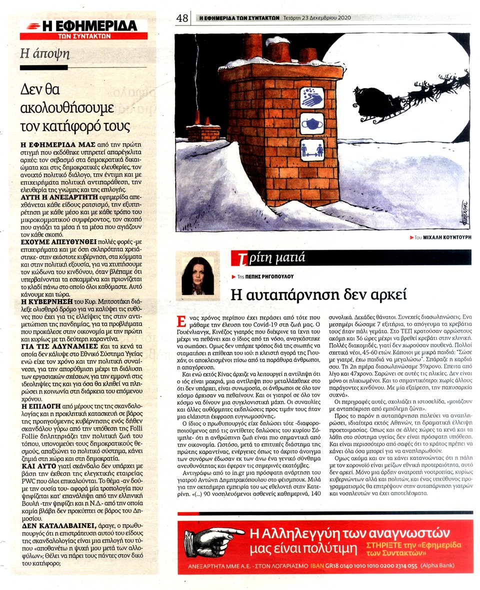 Η ΕΦΗΜΕΡΙΔΑ ΤΩΝ ΣΥΝΤΑΚΤΩΝ - 23 Δεκεμβρίου 2020