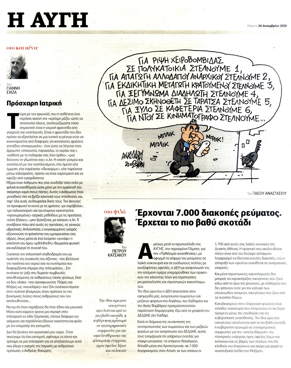 Η ΑΥΓΗ - 24 Δεκεμβρίου 2020