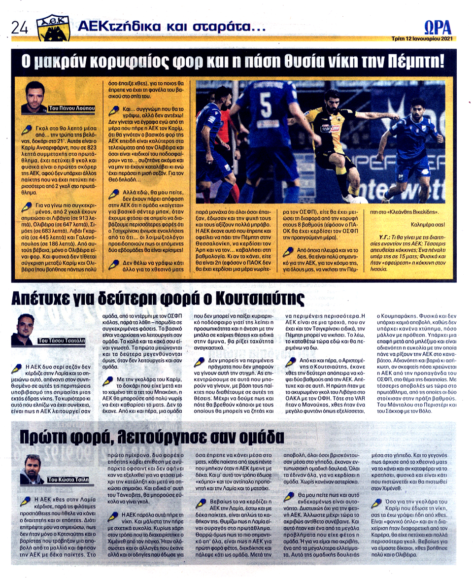 ΑΘΛΗΤΙΚΗ ΩΡΑ ΤΩΝ ΣΠΟΡ - 12 Ιανουαρίου 2021